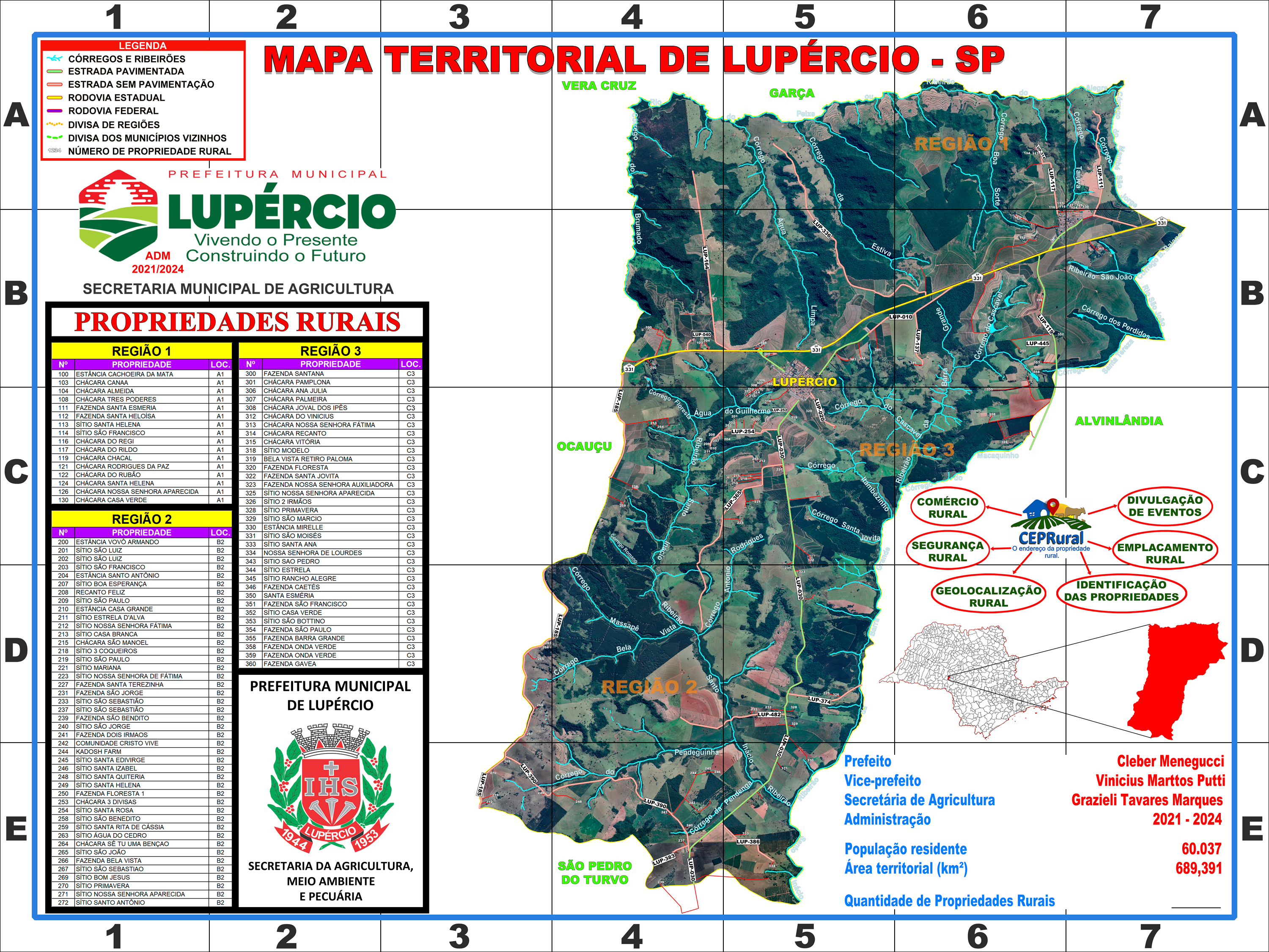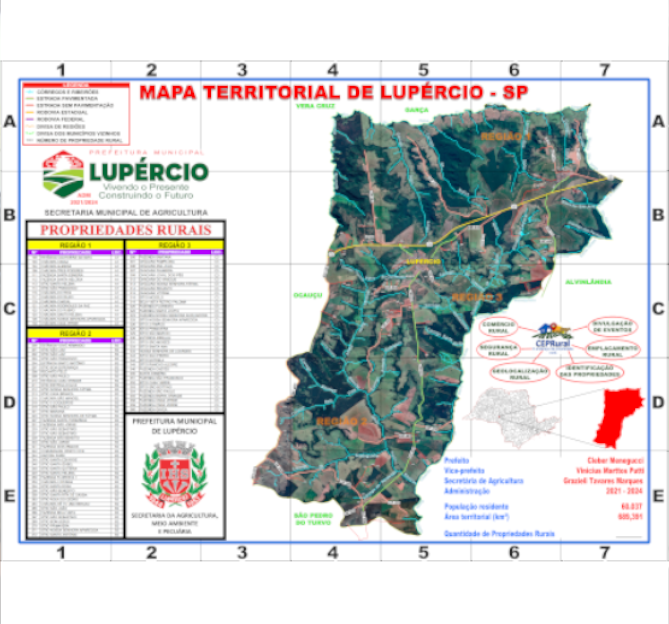 * Legenda contendo todas as propriedades rurais e sua localização no mapa;